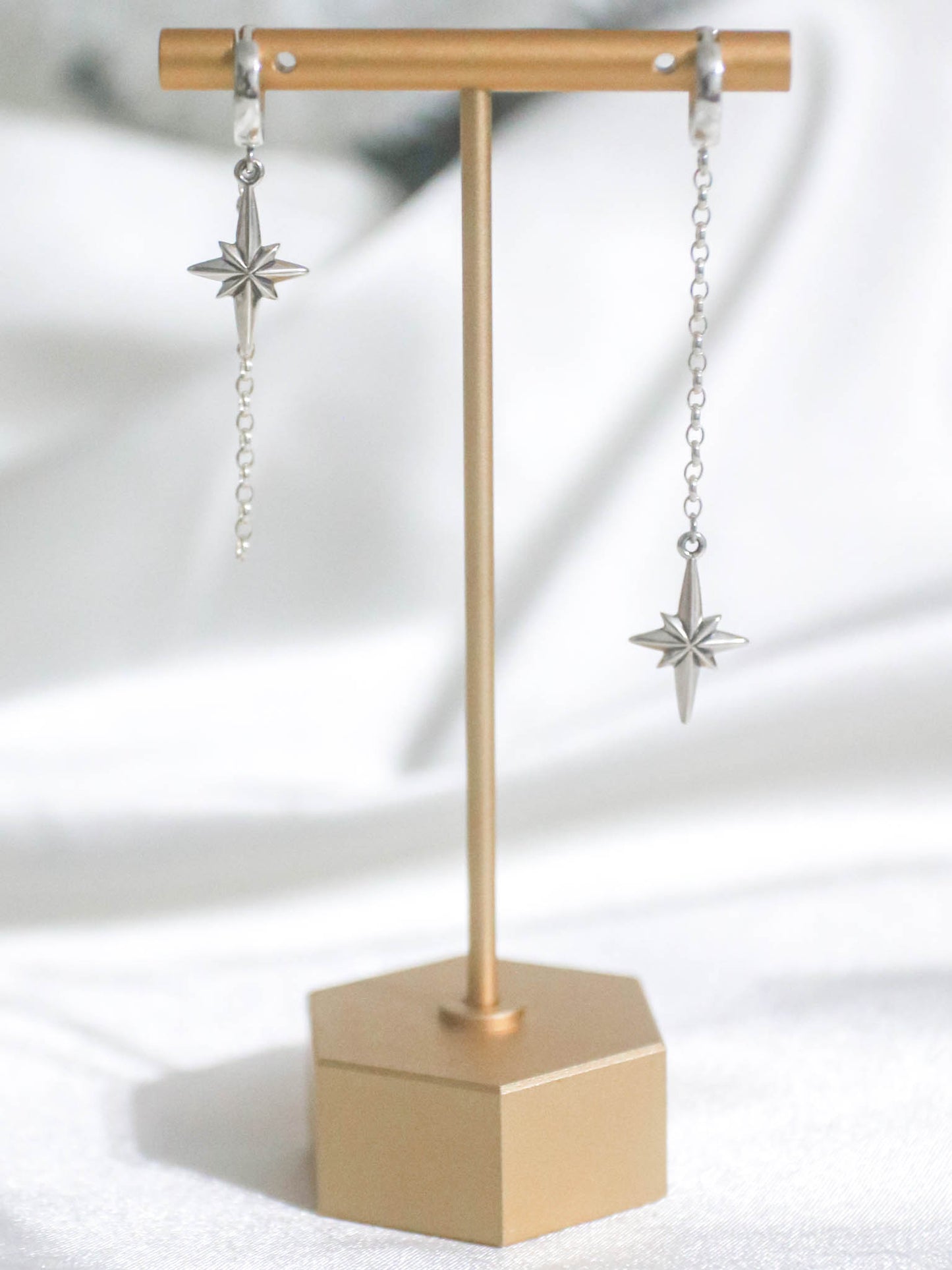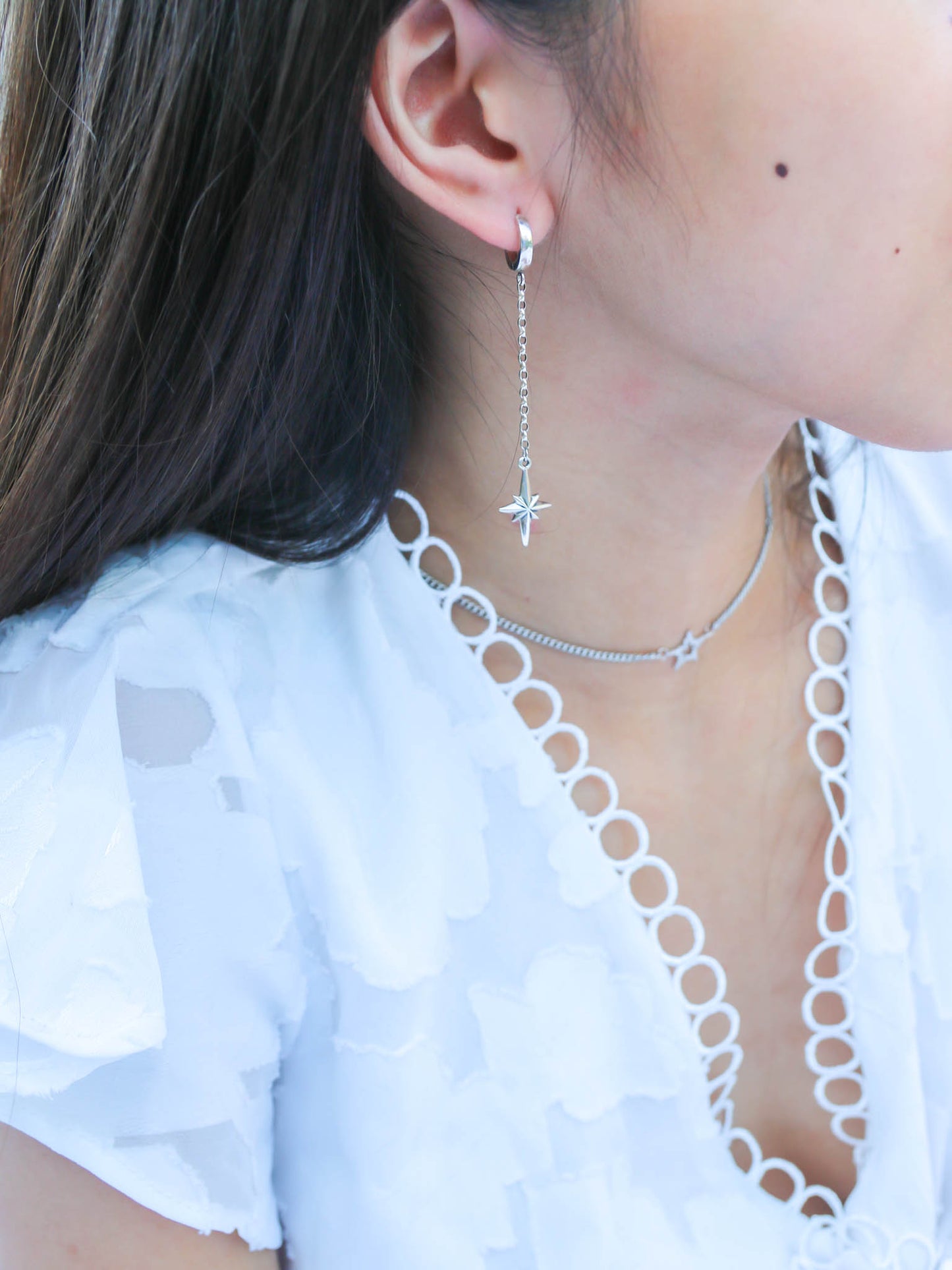 Five years ago, I had the wonderful opportunity to create an earring design just for Felix from Stray Kids! I could not complete the project due to personal family matters, but this pair is one of a kind and dear to my heart. I wanted to create a pair similar to his signature silver hoop earrings with my own spin. The North Star is symbolic of inspiration and known to be a bright guide to many. As bright as the stars and sun, these earrings represent the song and nickname for Felix, Sunshine. This symbol truly represents how I feel as a Stay and hope to continue to support their journey in the future.